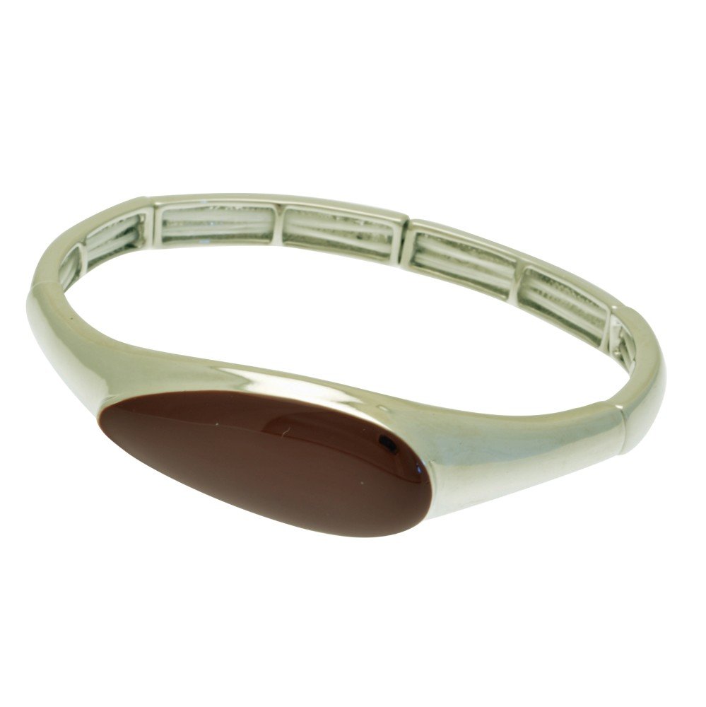 A new style, dark red elasticated bracelet to co-ordinate with our new oil-painted jewellery. The sleek, rich appearance of this finish is perfect for the Autumn-Winter season. The dark red teardrop element is approximately 4cm by 1.2cm.